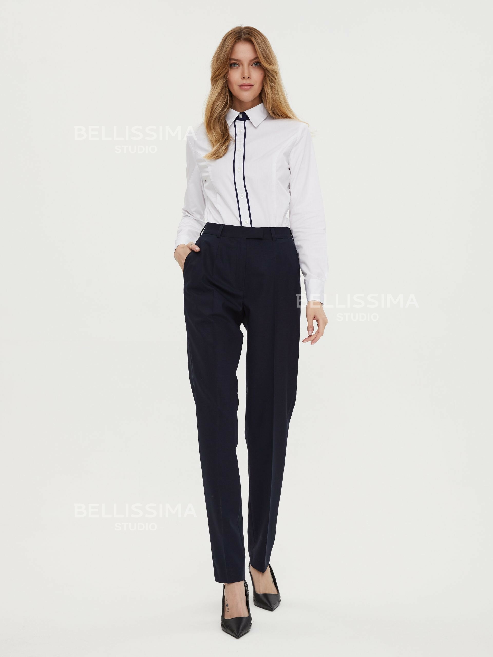 Брюки прямые выполнены из полушерстяной ткани. Базовые брюки для любого случая со стрелками.- посадка на талии;- застежка на молнию и крючок;- карманы в боковых швах;- без подкладки. На модели 42 размер.Параметры модели:ОТ: 60 см; ОБ: 90 см; Рост: 176 см.