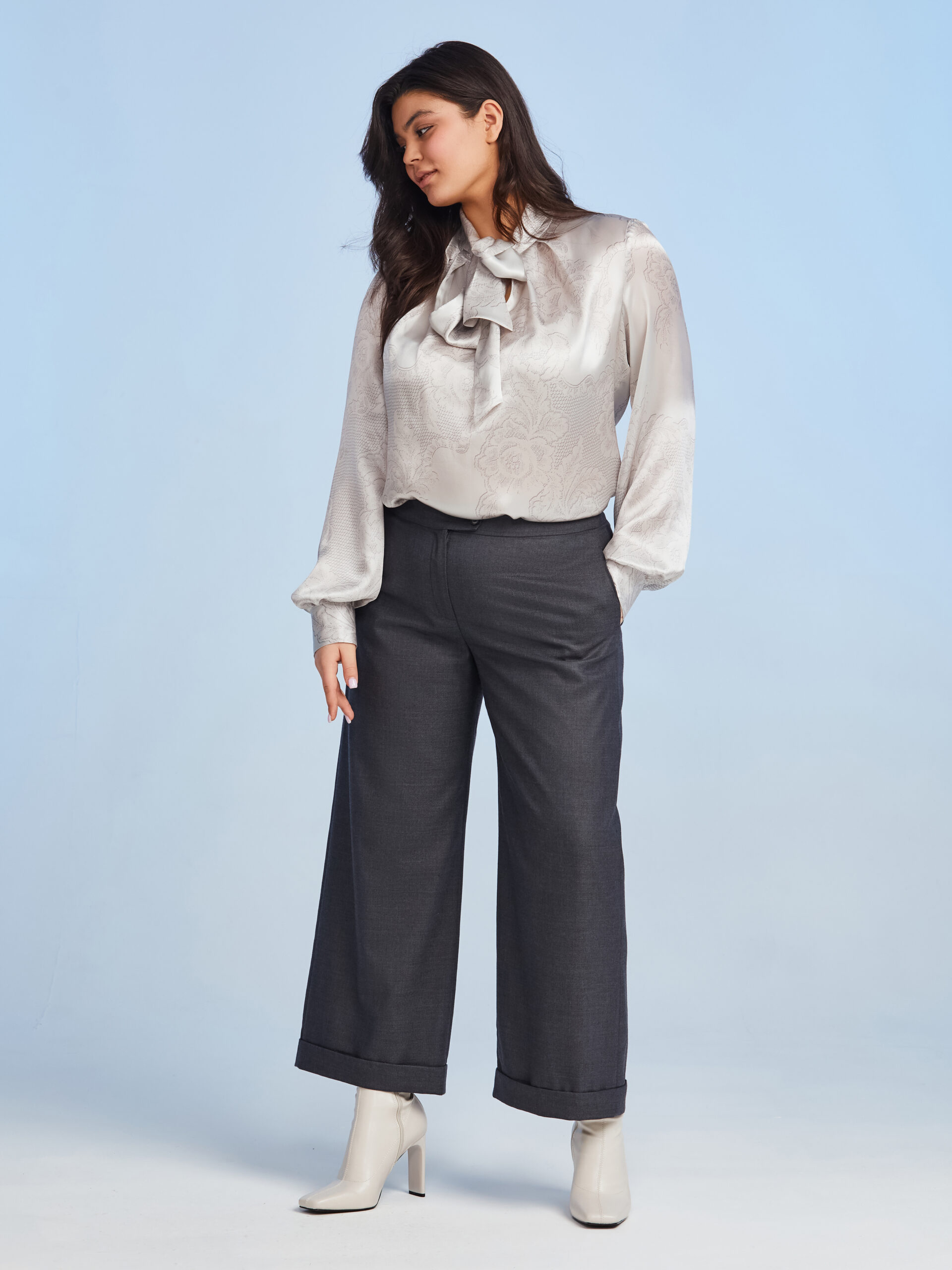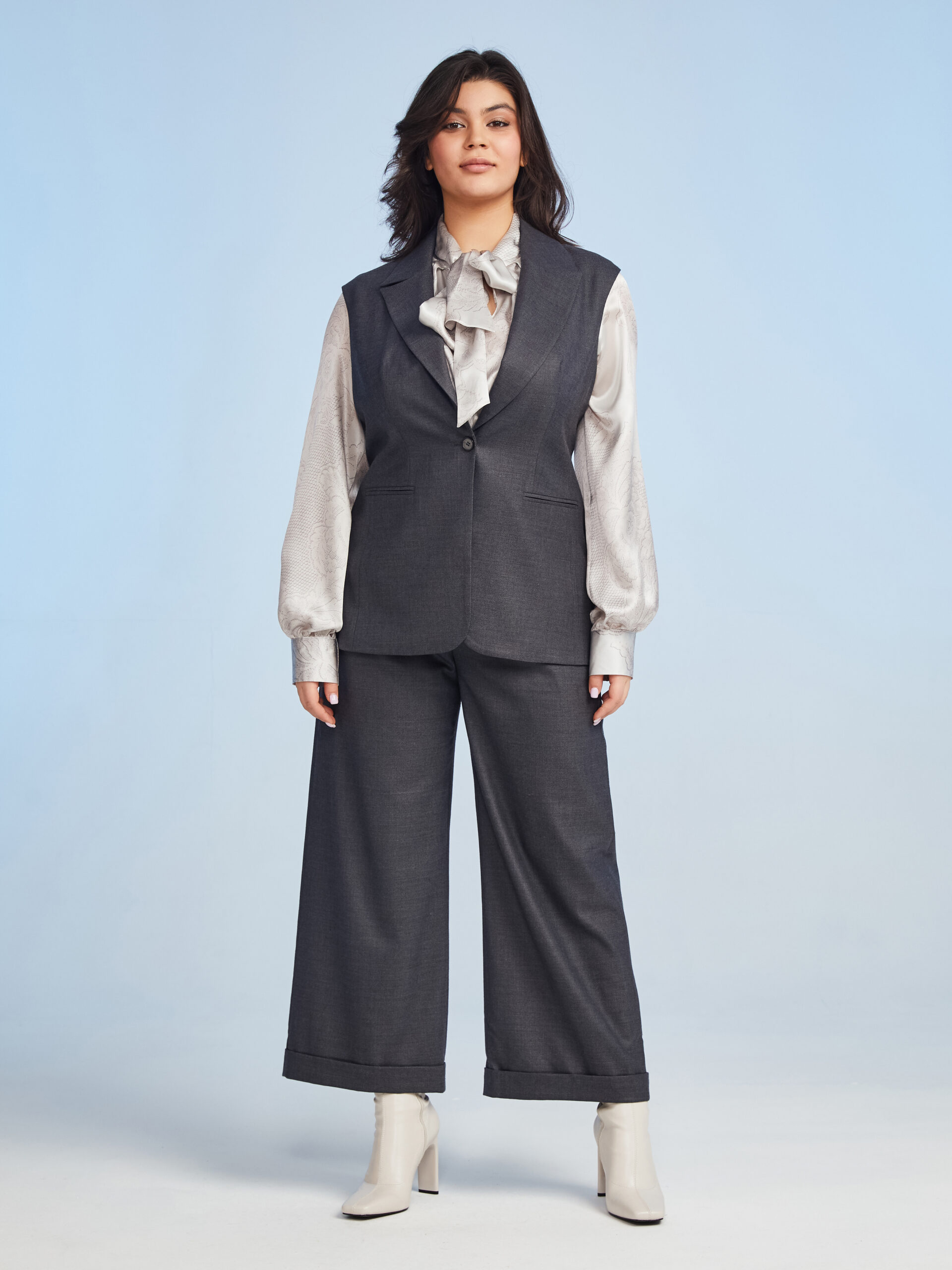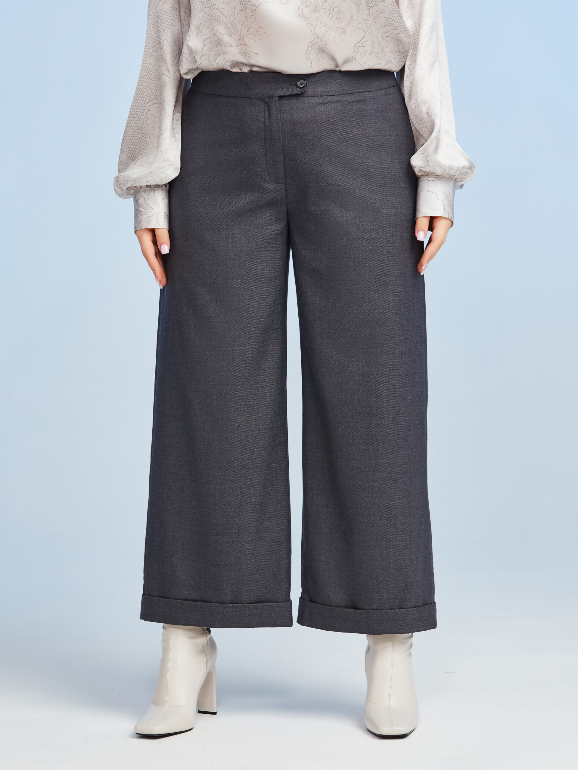 Брюки кюлоты из 100% шерсти, темно серого цвета . Коллекция Plus Size Брюки
