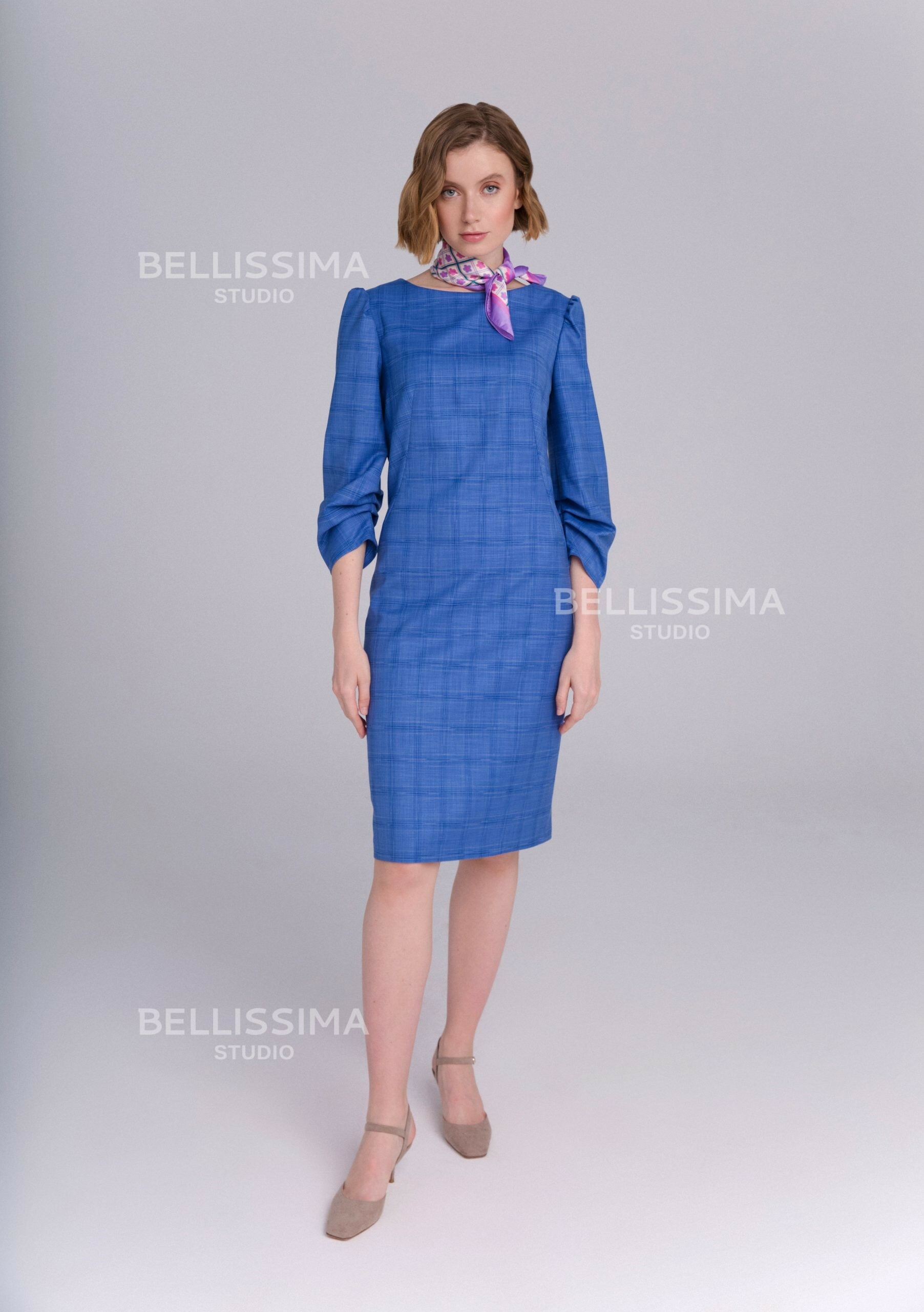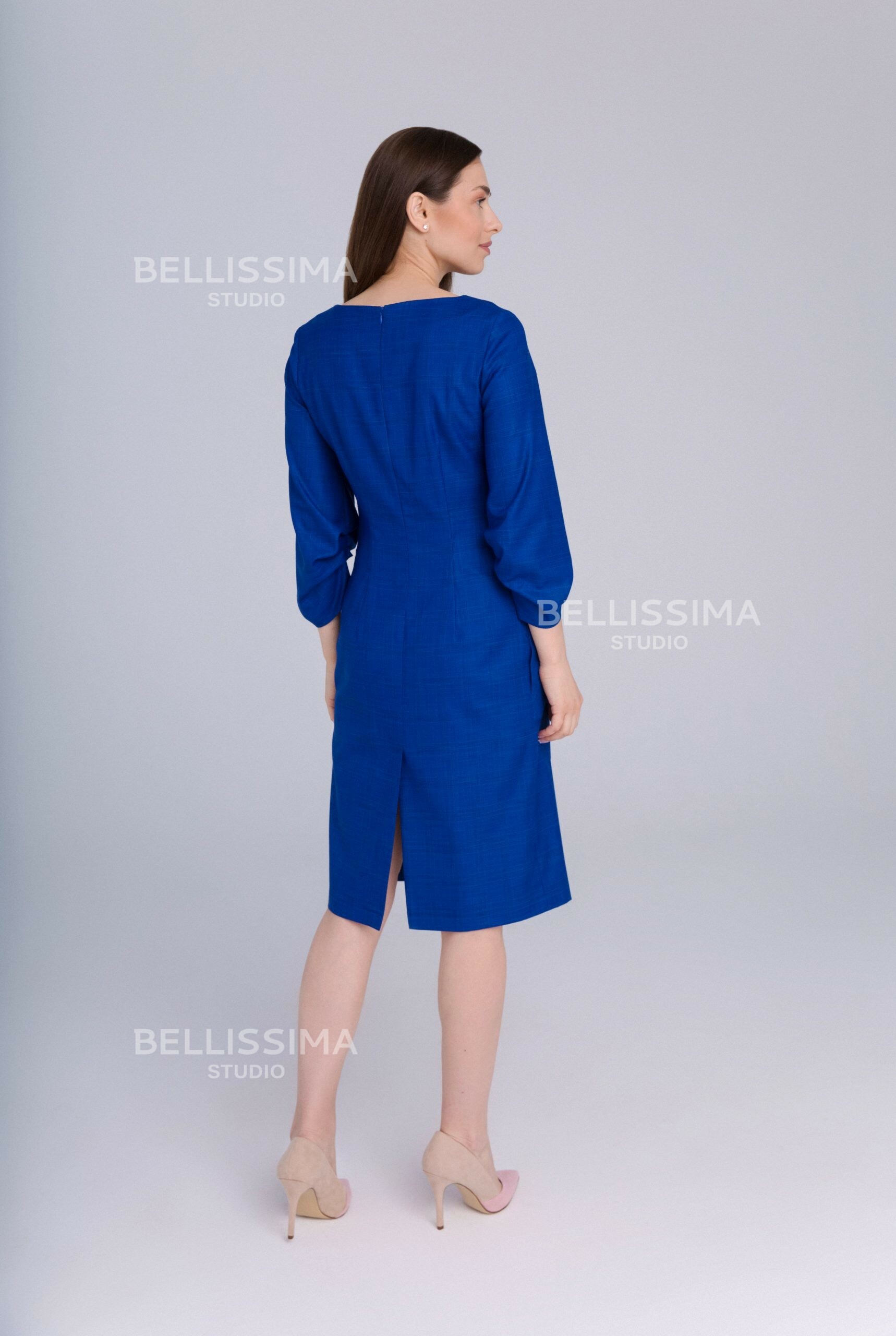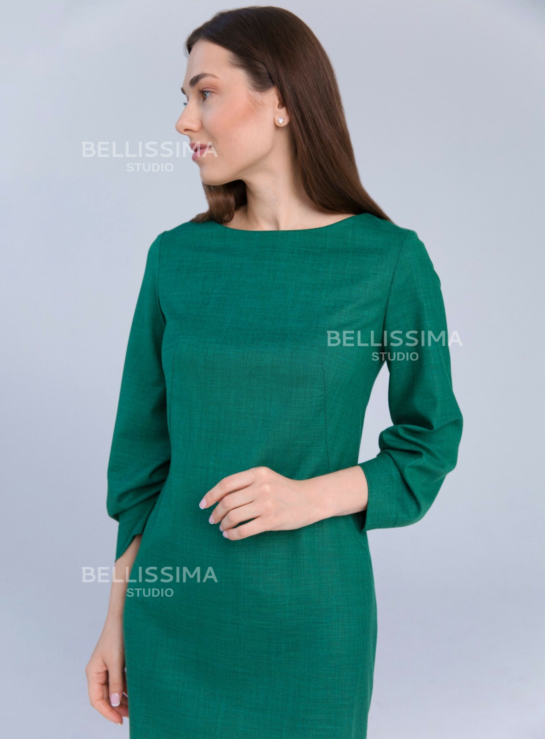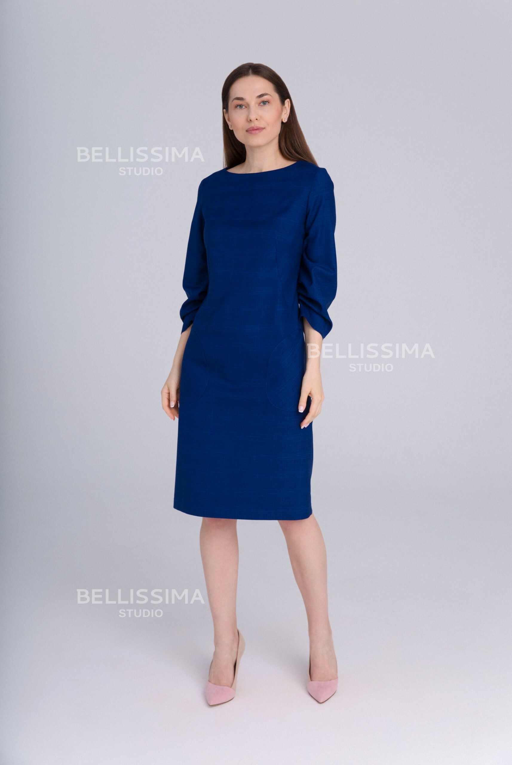Платье полуприлегающего силуэта выполнено из эластичной, средней плотности костюмной ткани. Свободный силуэт и вытачки по бокам и спине обеспечат прекрасную посадку на любой фигуре.