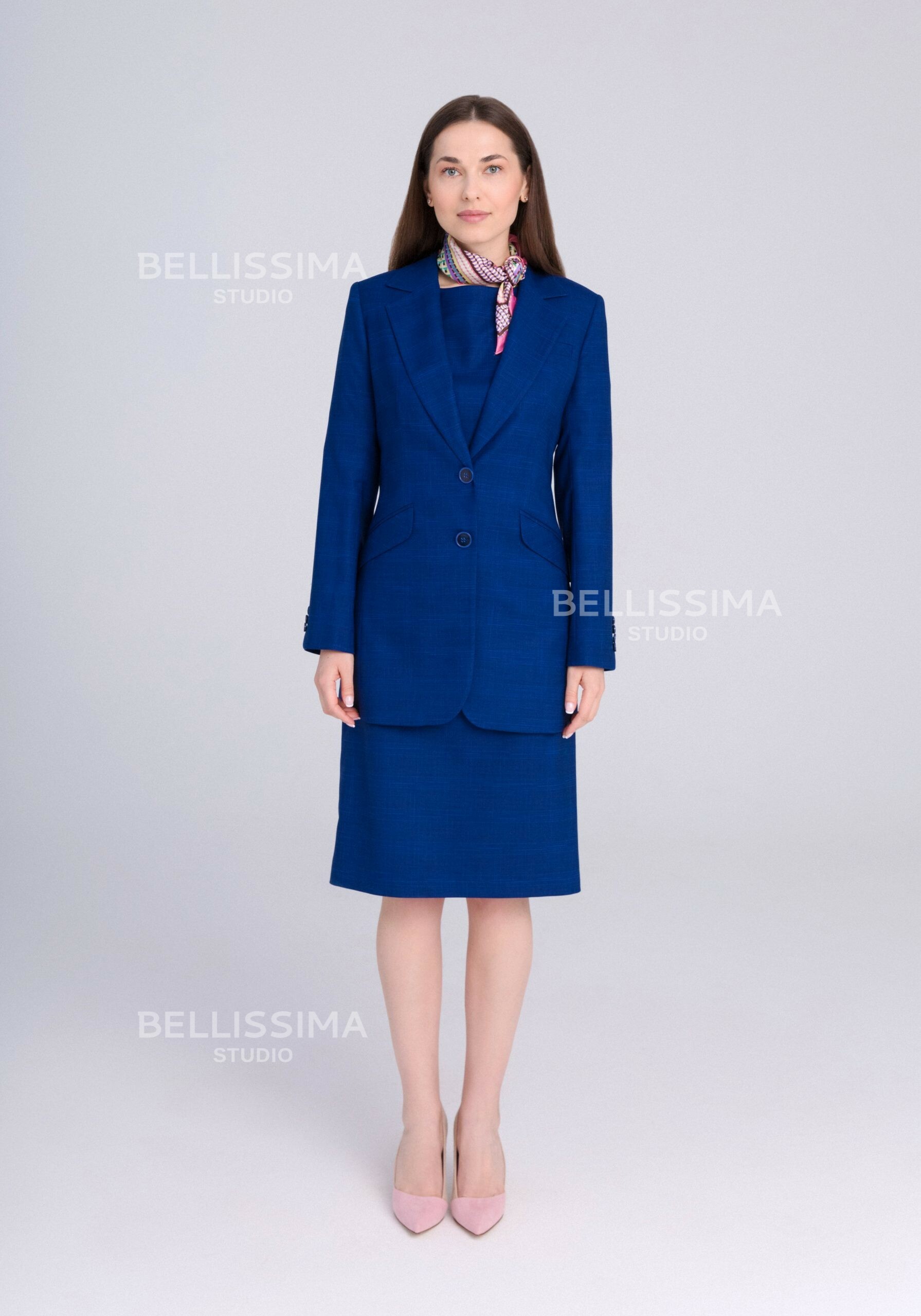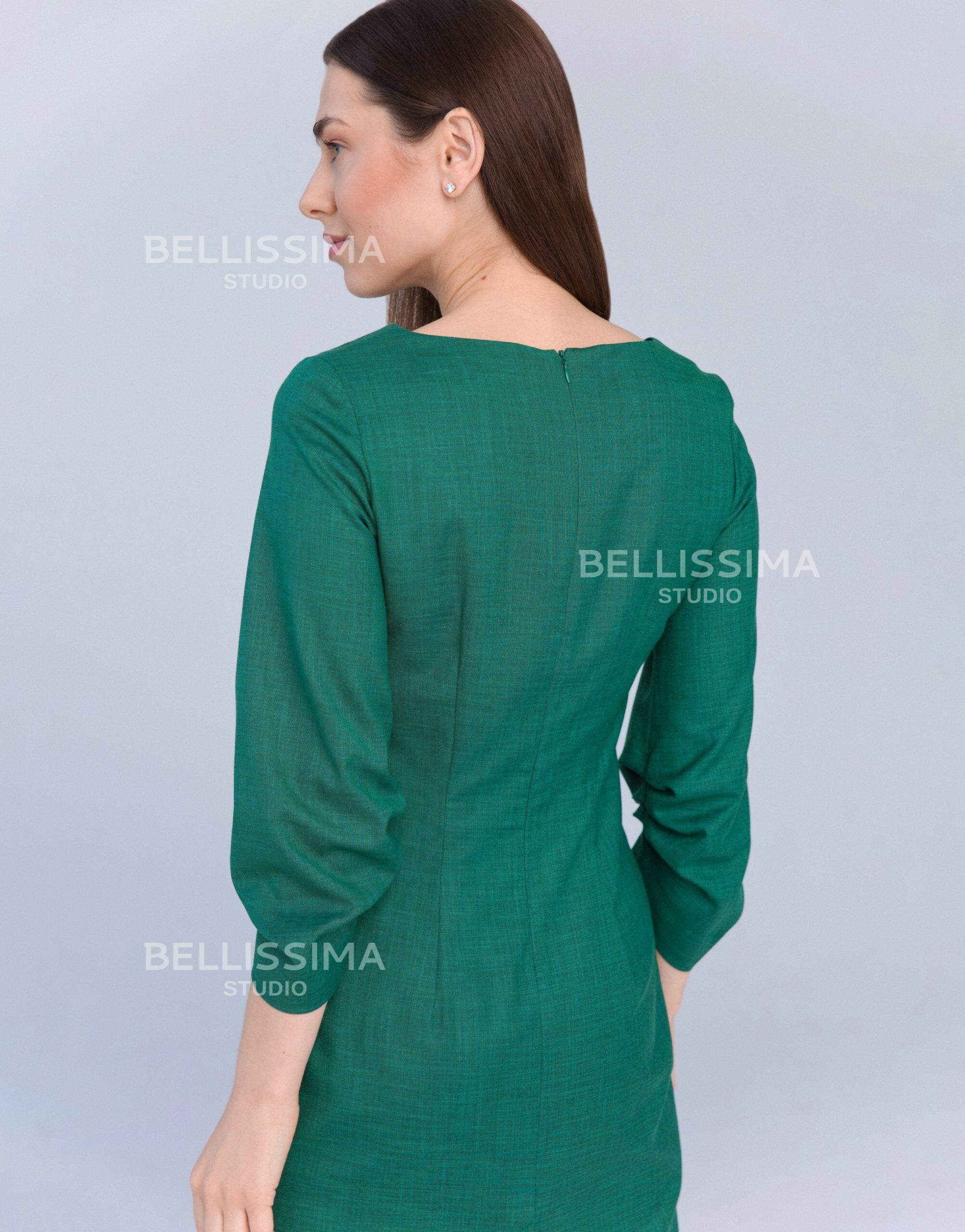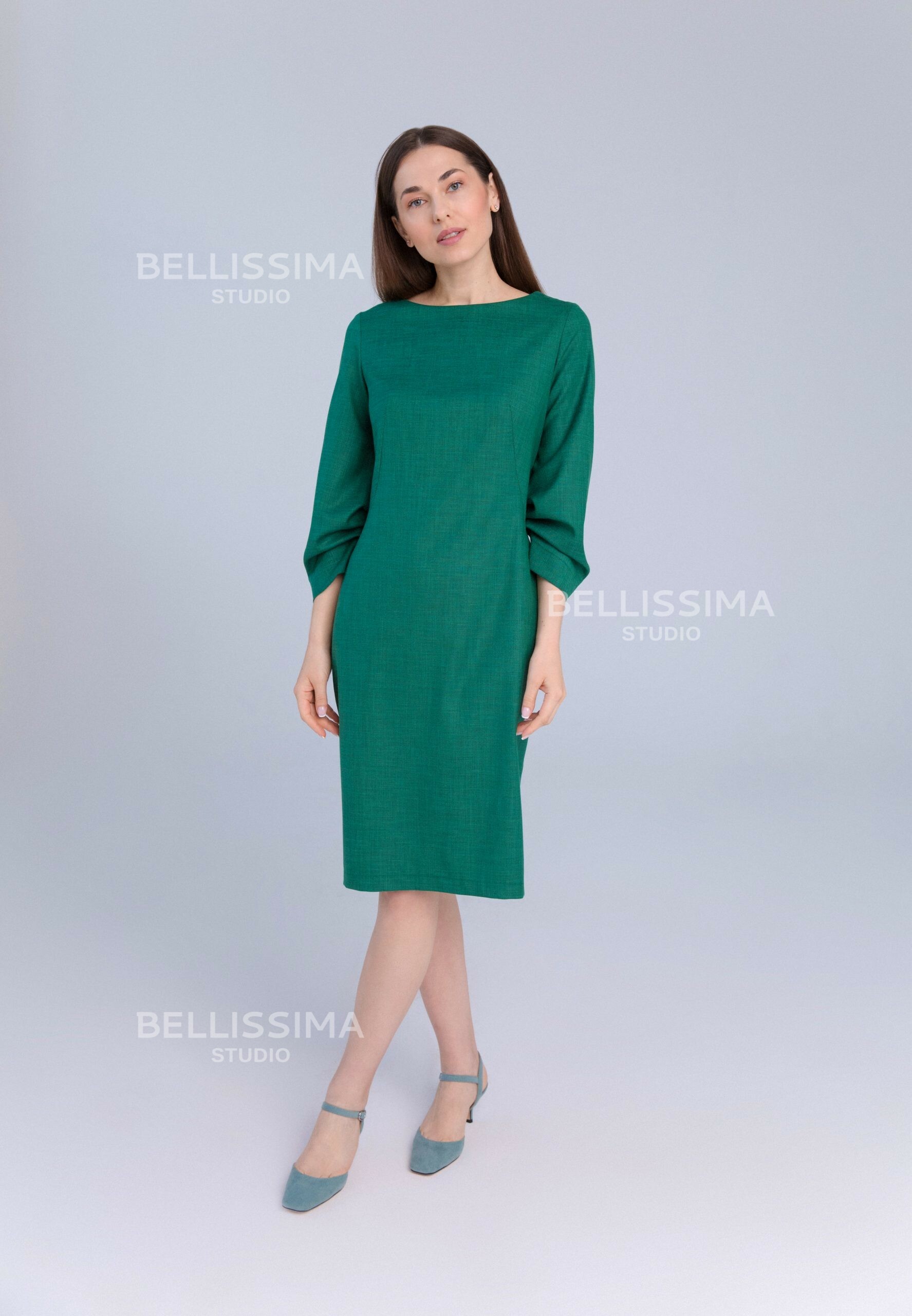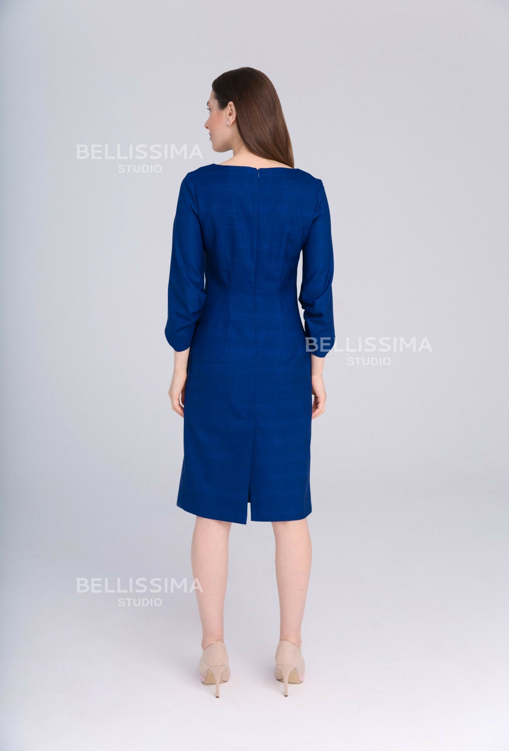 Платье полуприлегающего силуэта выполнено из эластичной, средней плотности костюмной ткани. Свободный силуэт и вытачки по бокам и спине обеспечат прекрасную посадку на любой фигуре.