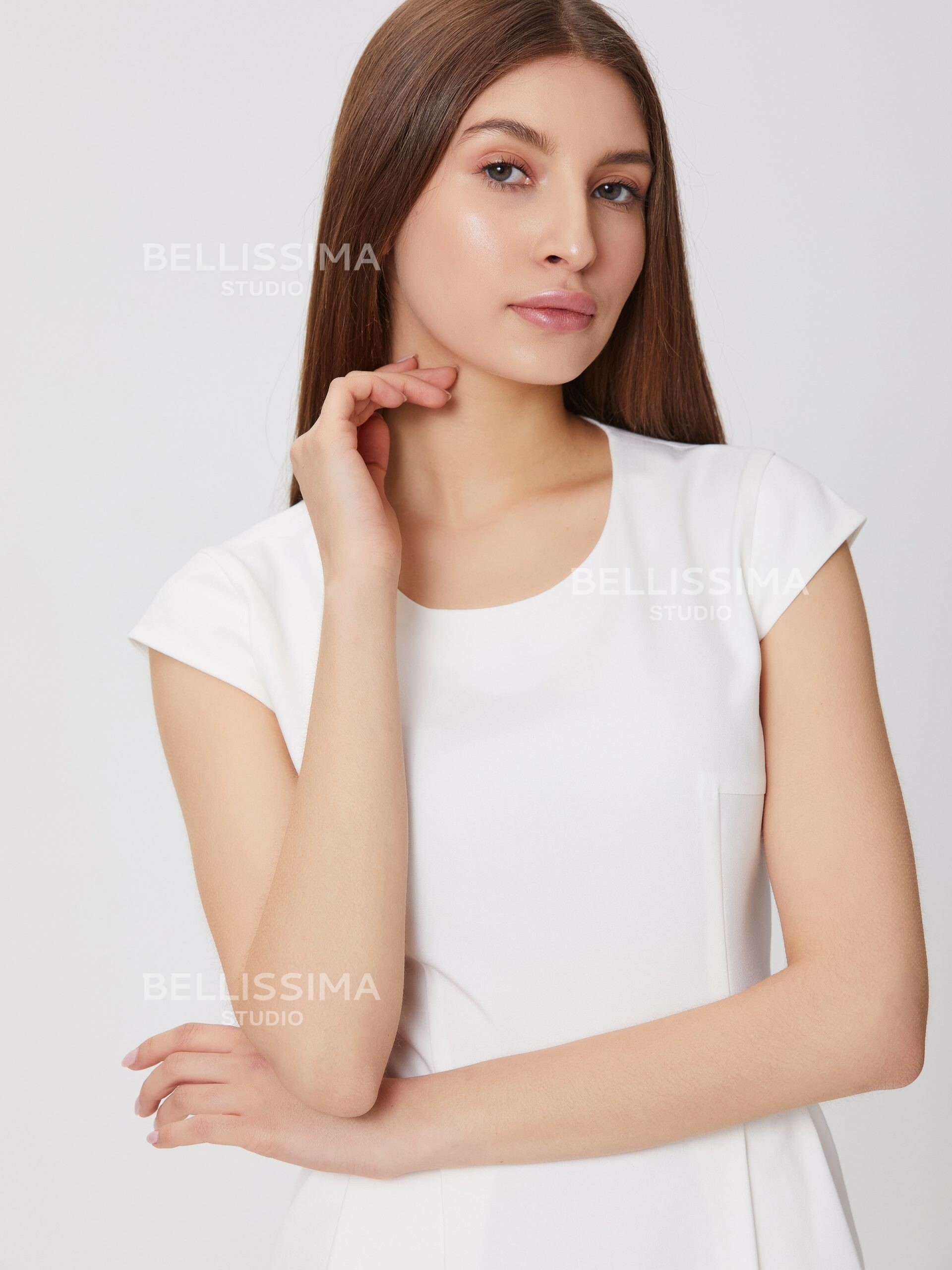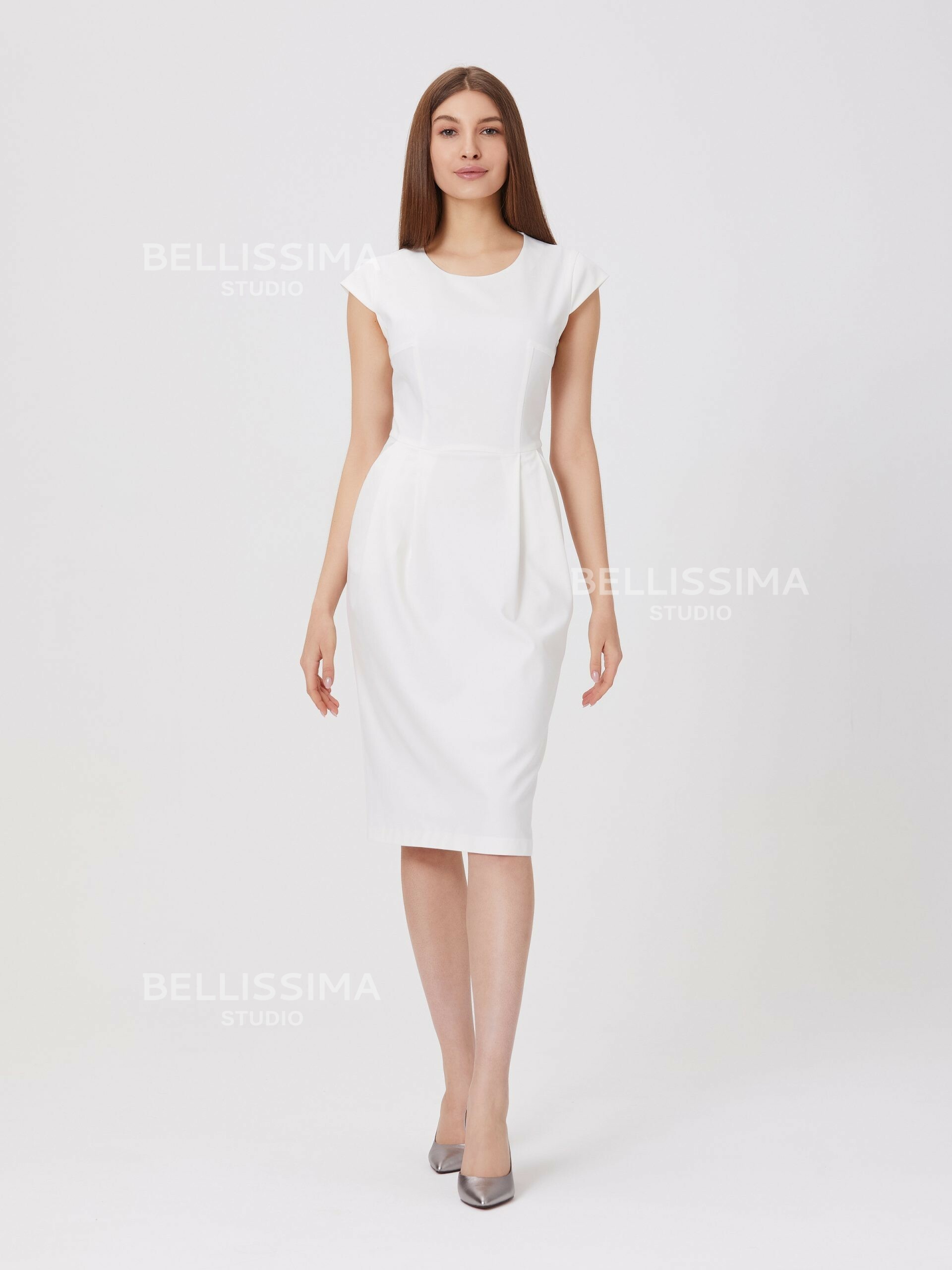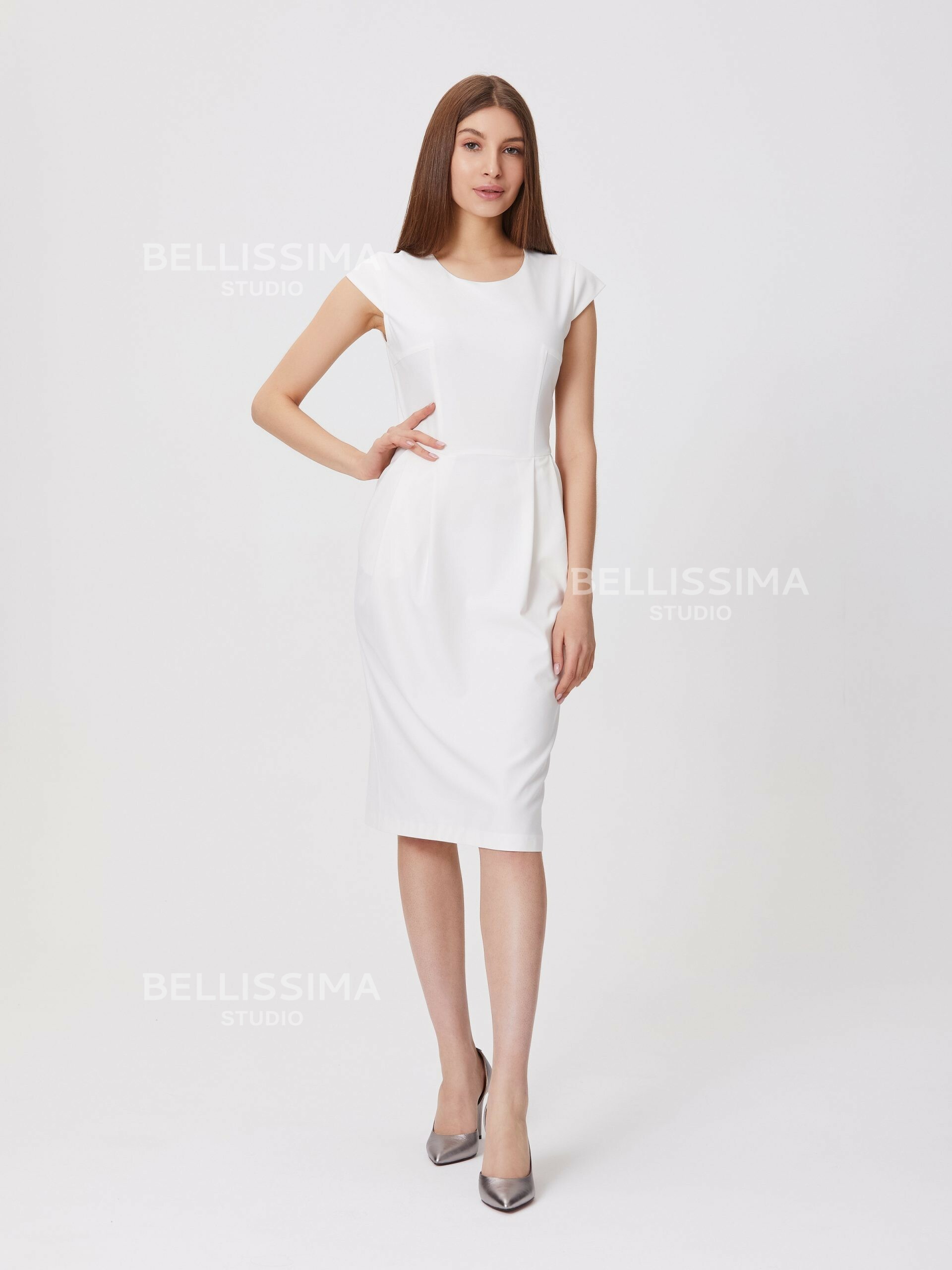 Элегантное платье из полушерстяной ткани. Приталенное.- застежка на молнию;- юбка с разрезом сзади, силуэт зауженный;- рукава короткие;- без подкладки.