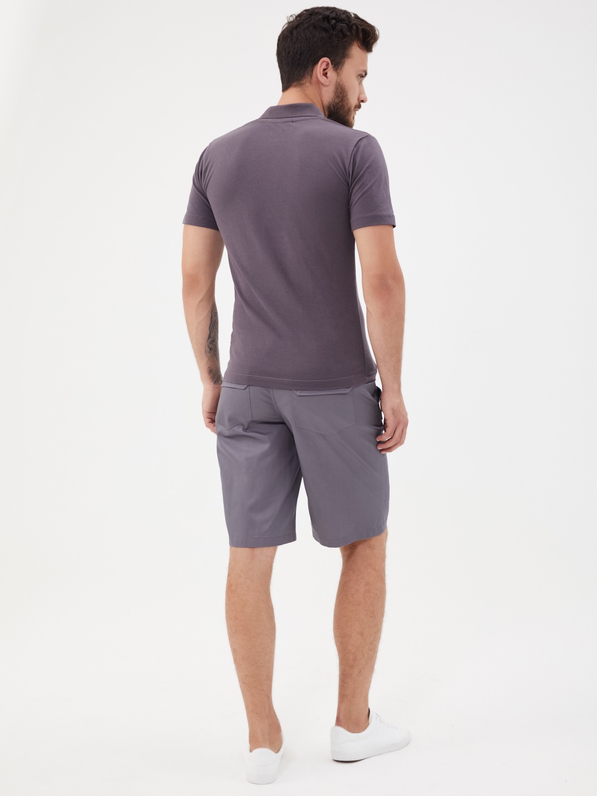 Шорты застегиваются на молнию и пуговицу, есть шлевки для ремня и 2 боковых кармана, а также задний карман