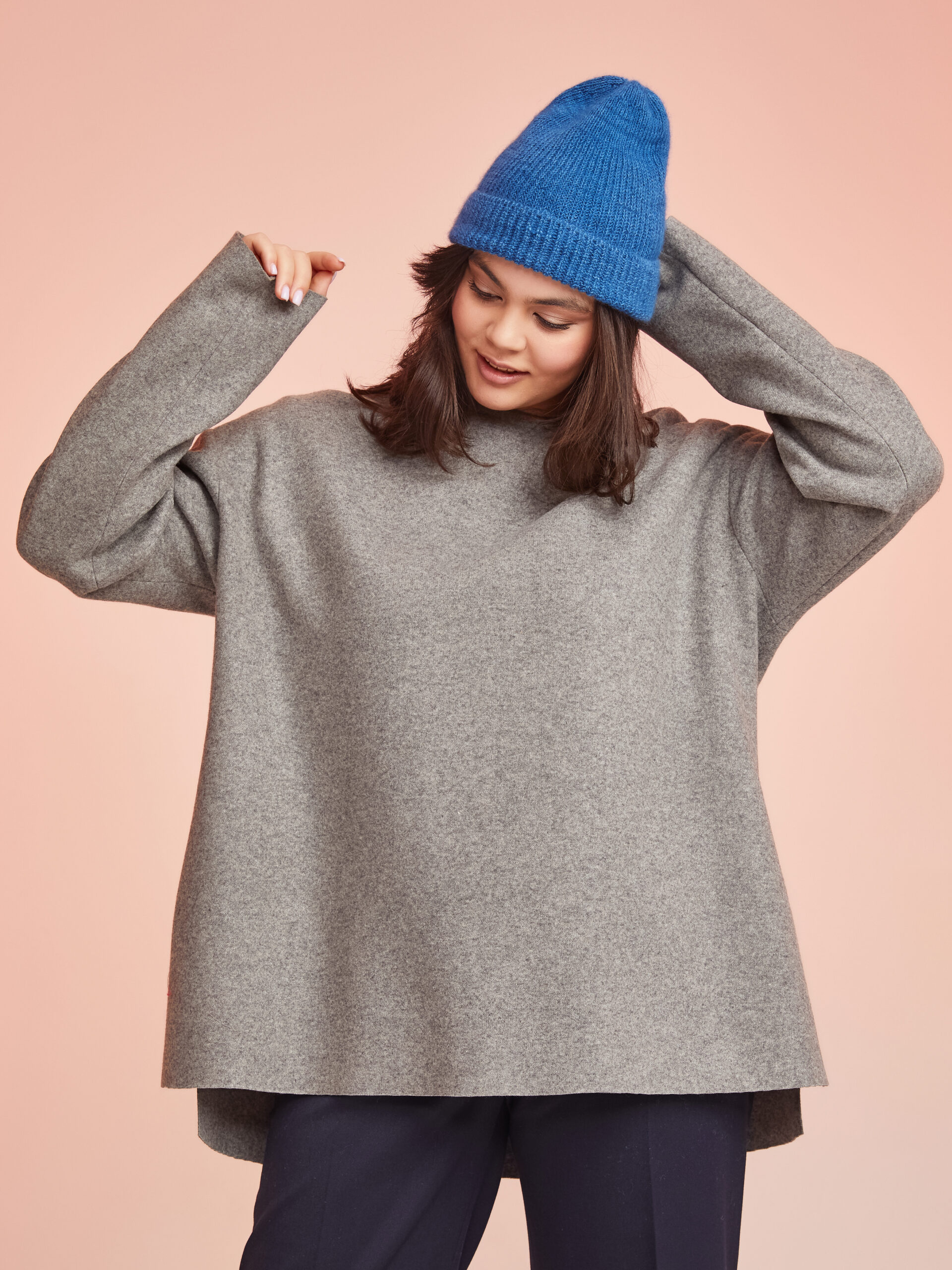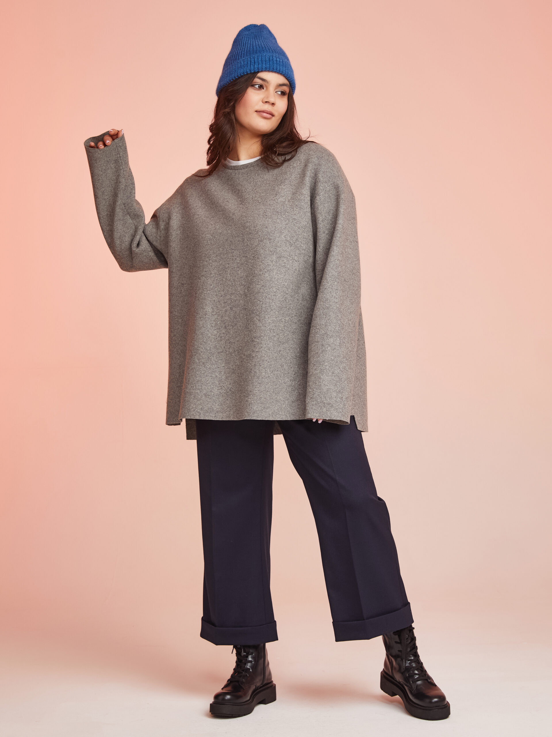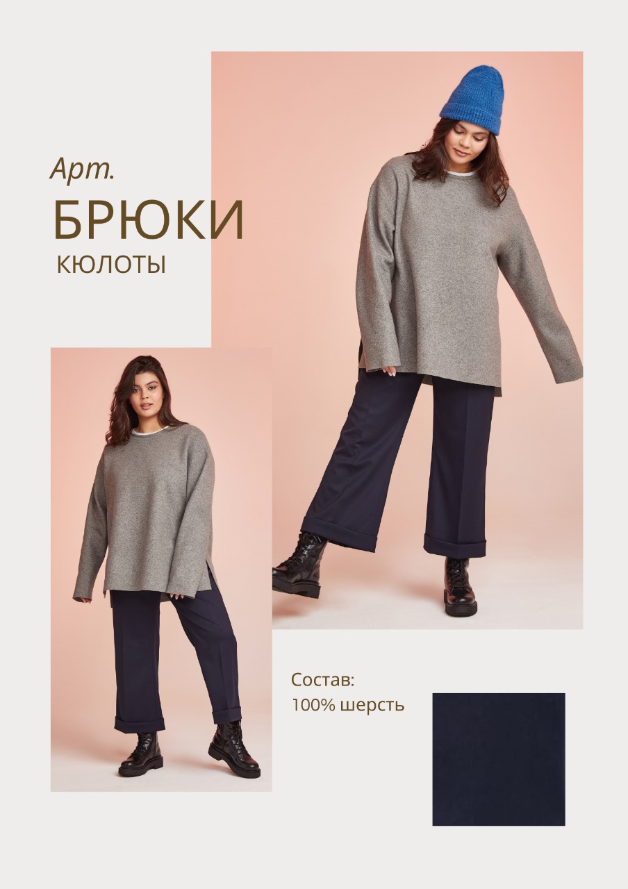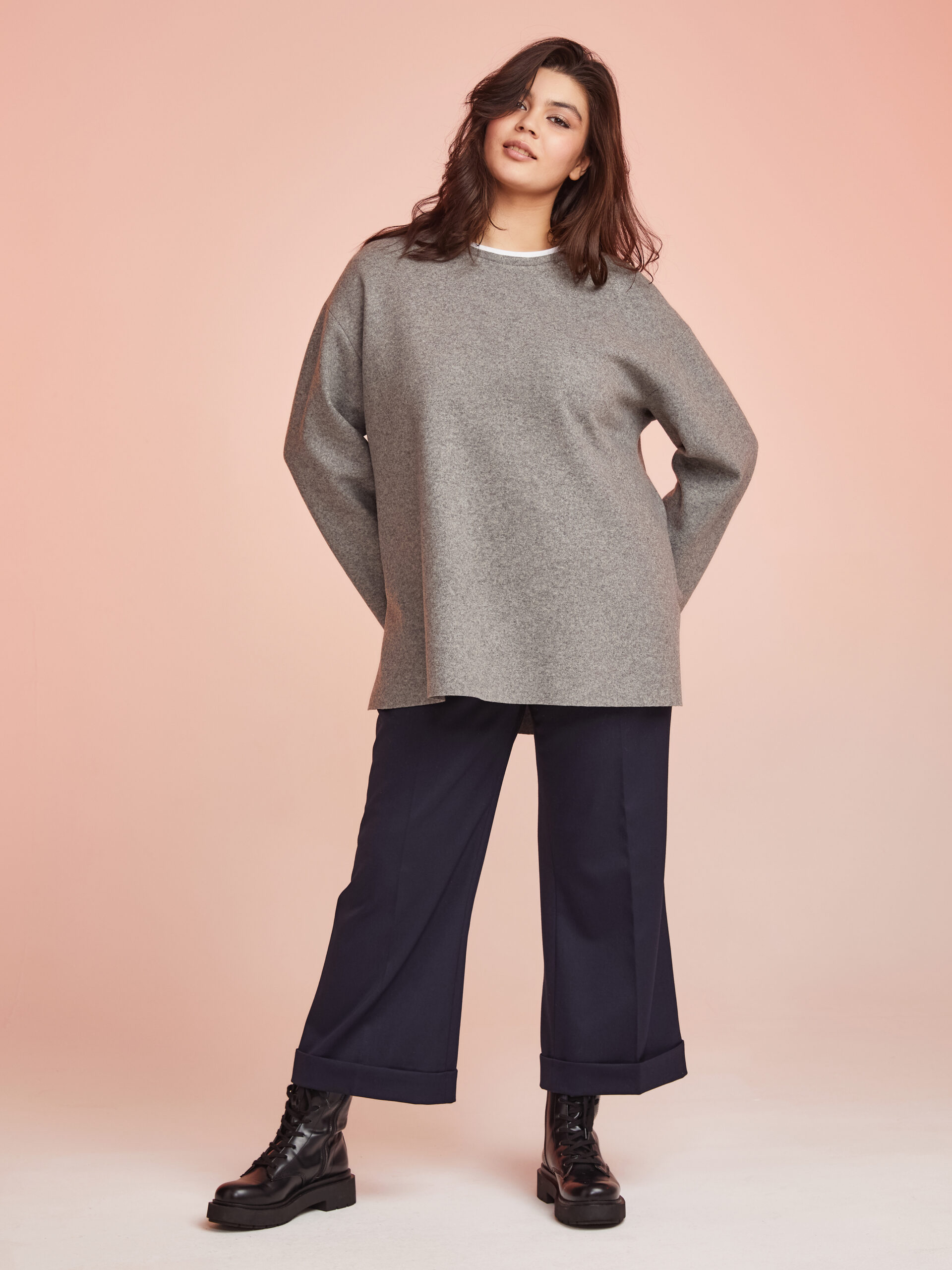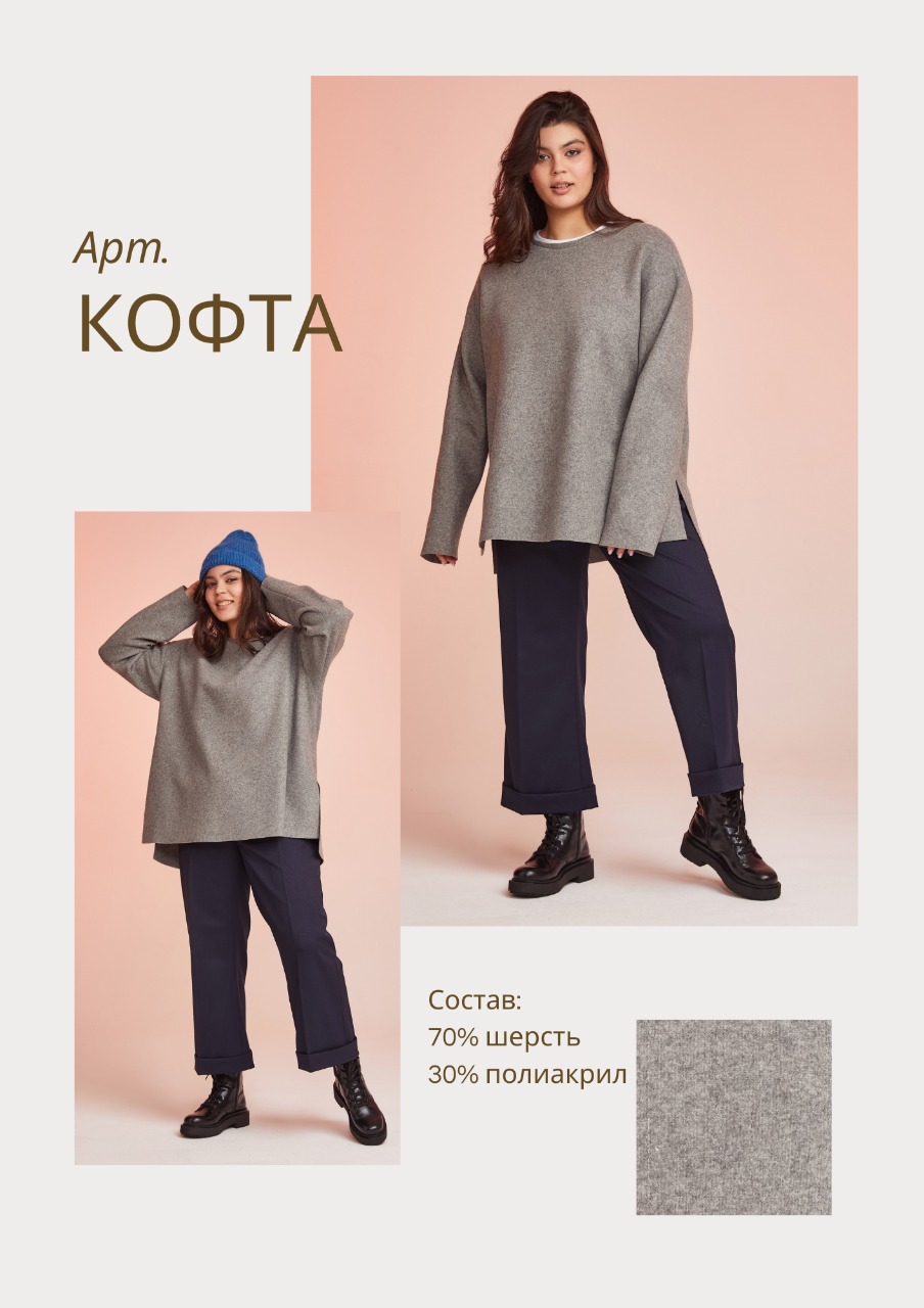 Свитер женский из 100% шерсти, серого цвета . Коллекция Plus Size