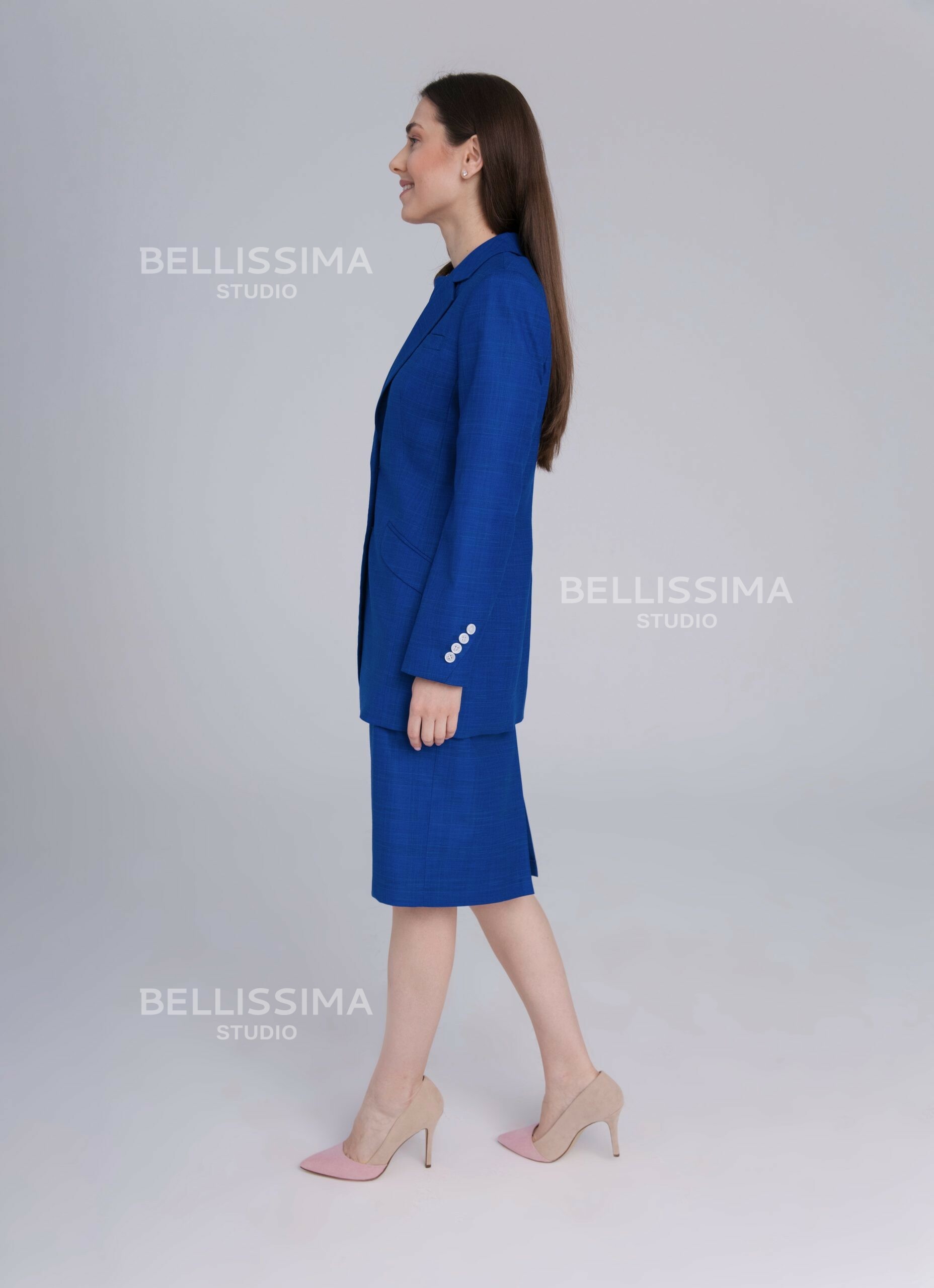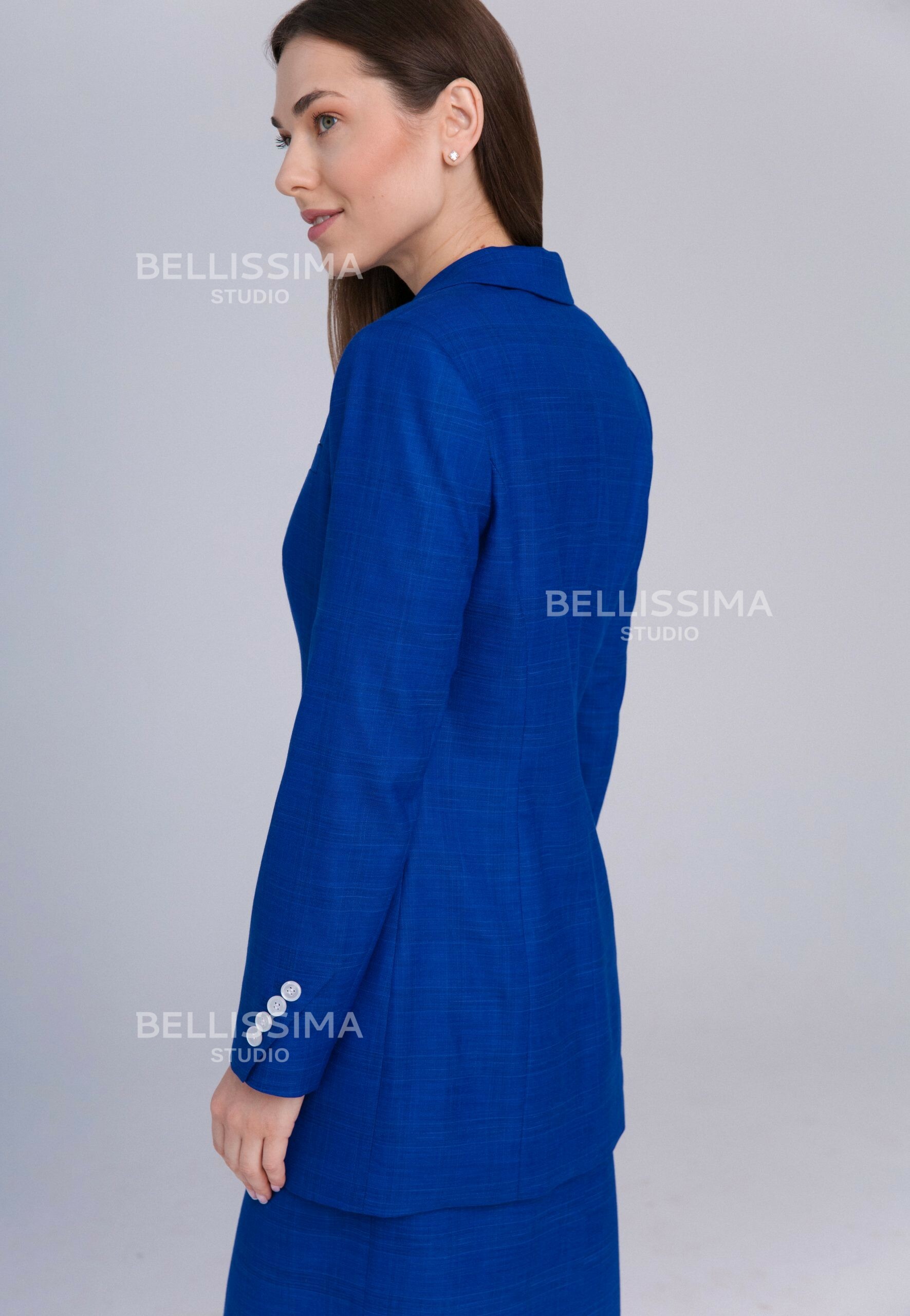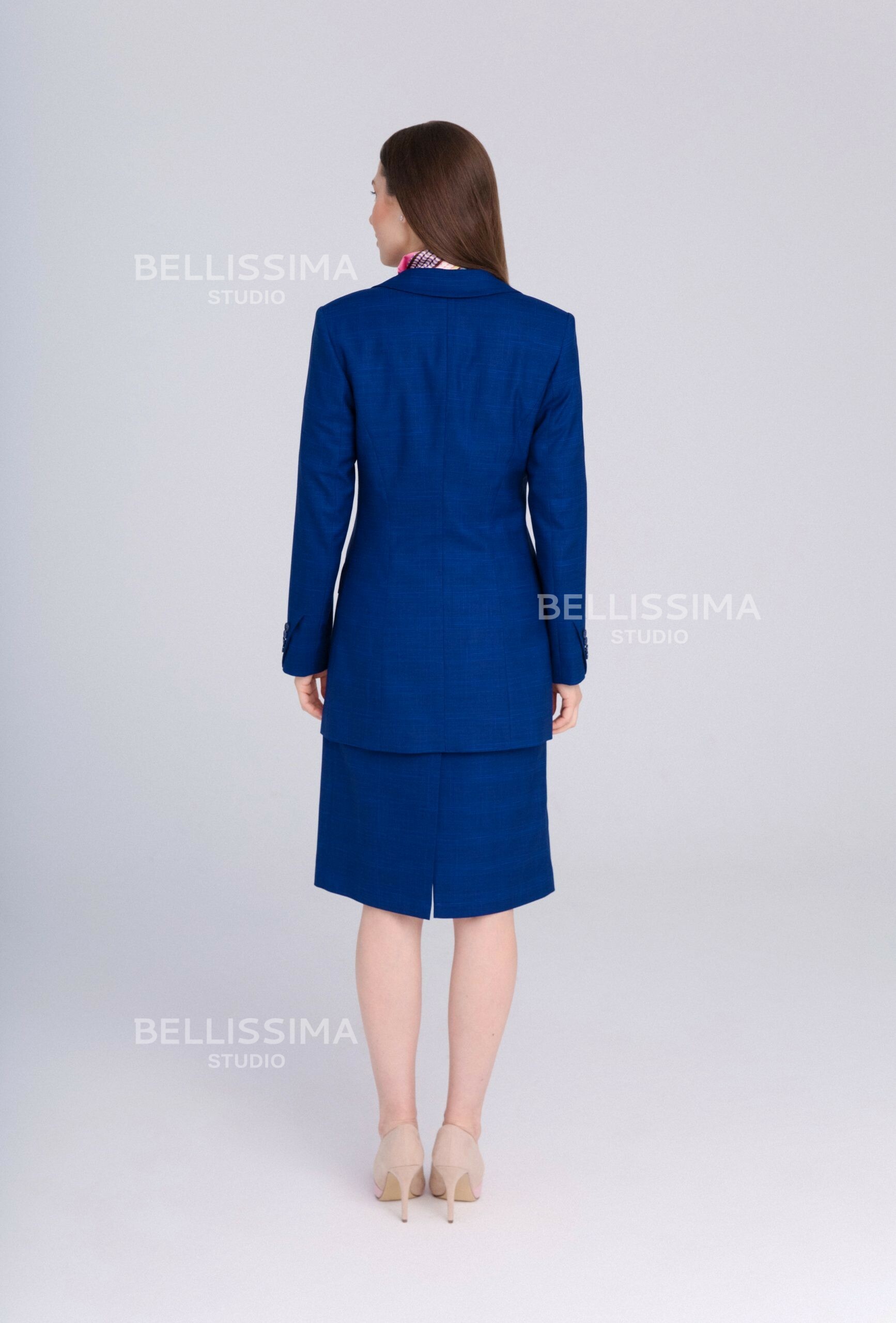 Жакет полуприлегающего силуэта, удлиненный. Выполнен из эластичной, средней плотности костюмной ткани. Прекрасно подойдет для любого дресс-кода.