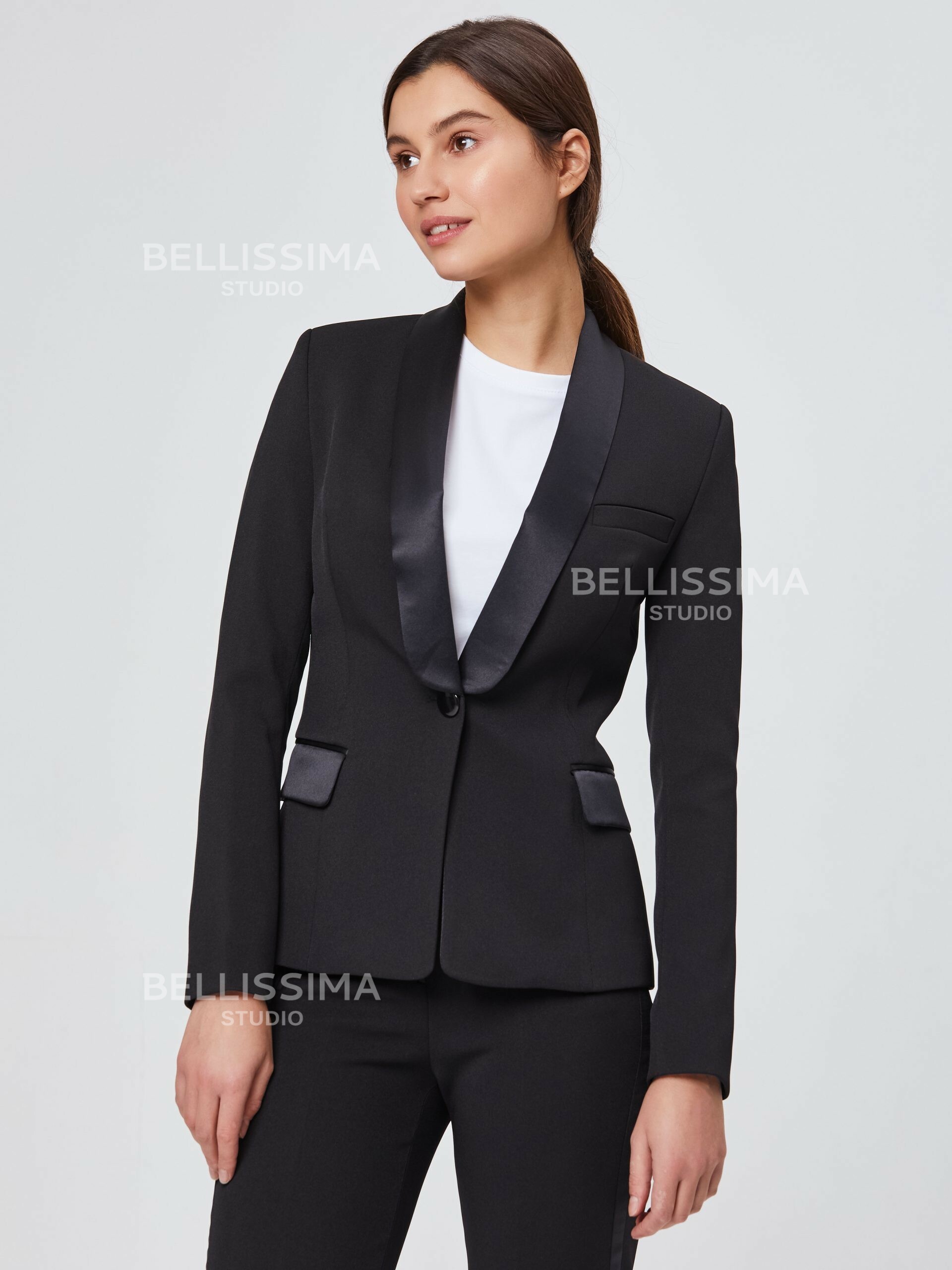 – воротник шаль выполнен из атласной ткани;